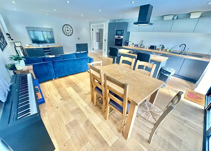 Nestled a 10-minute drive from the arts theater "Shelley Theatre", Stylish Coastal Retreat With Garden, Hot Tub And Gas Bbq Villa Bournemouth entices guests to explore various tourist destinations nearby.